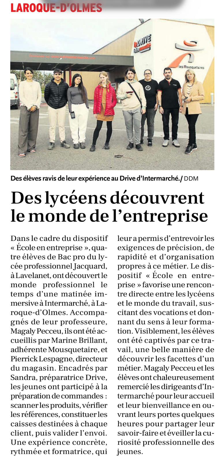 Les élèves impliqués dans la préparation des commandes au Drive de l'Intermarché à Laroque d'Olmes.